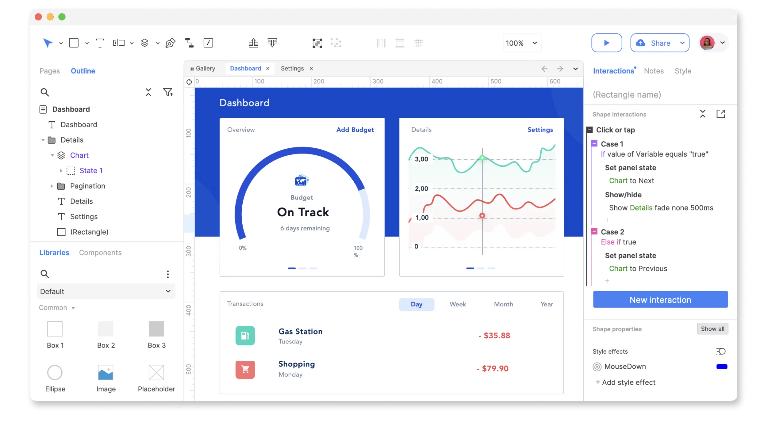 Axure是一款非常有名的老牌原型设计工具,以逻辑严谨、交互能力强大著称。它可以模拟复杂的条件判断、动态数据和多页面交互,是产品经理在需求验证和用户测试中的常用工具。虽然学习曲线较陡,但它的功能深度足以覆盖最复杂的业务场景。