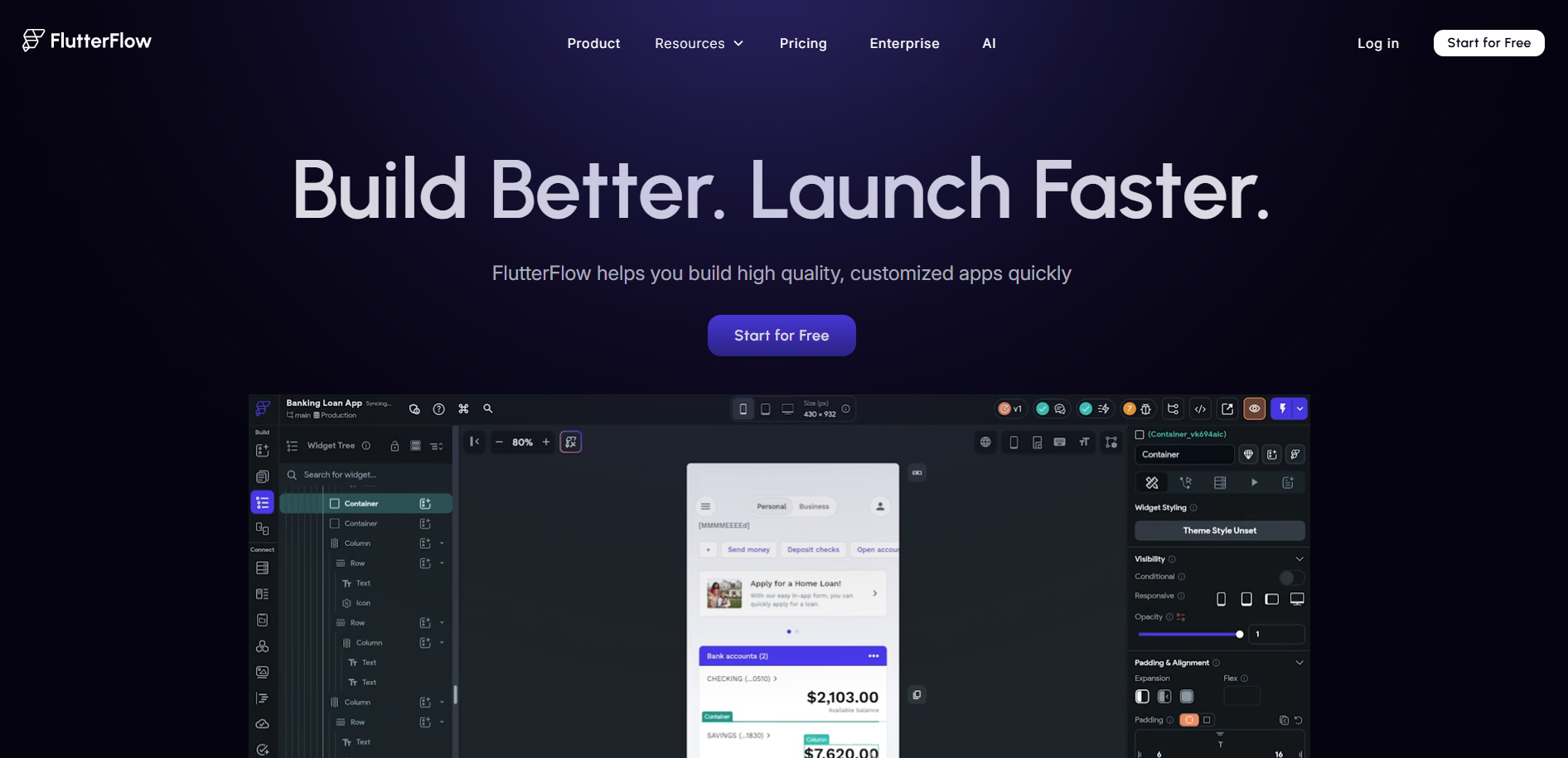 如果你的目标是开发原生移动 App 而非单纯的网页,FlutterFlow 是目前市面上效率最高的选择。它让设计师甚至能在不写一行代码的情况下,独立完成一个全功能 App 的开发与上架。