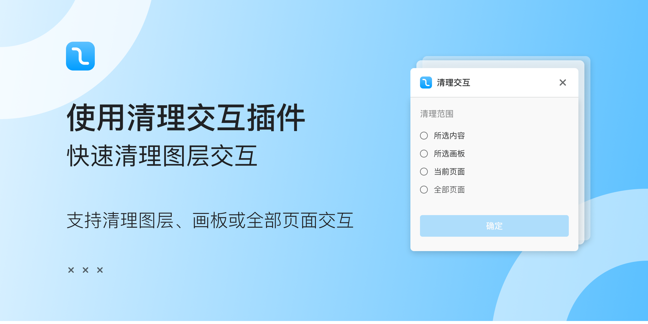 一键清理选择范围内已设置的交互 选择需要清理的范围,清理所选画板时,需要在画布中选中相应的画板; 点击清理,即可快速清除所选范围内已设置的交互。