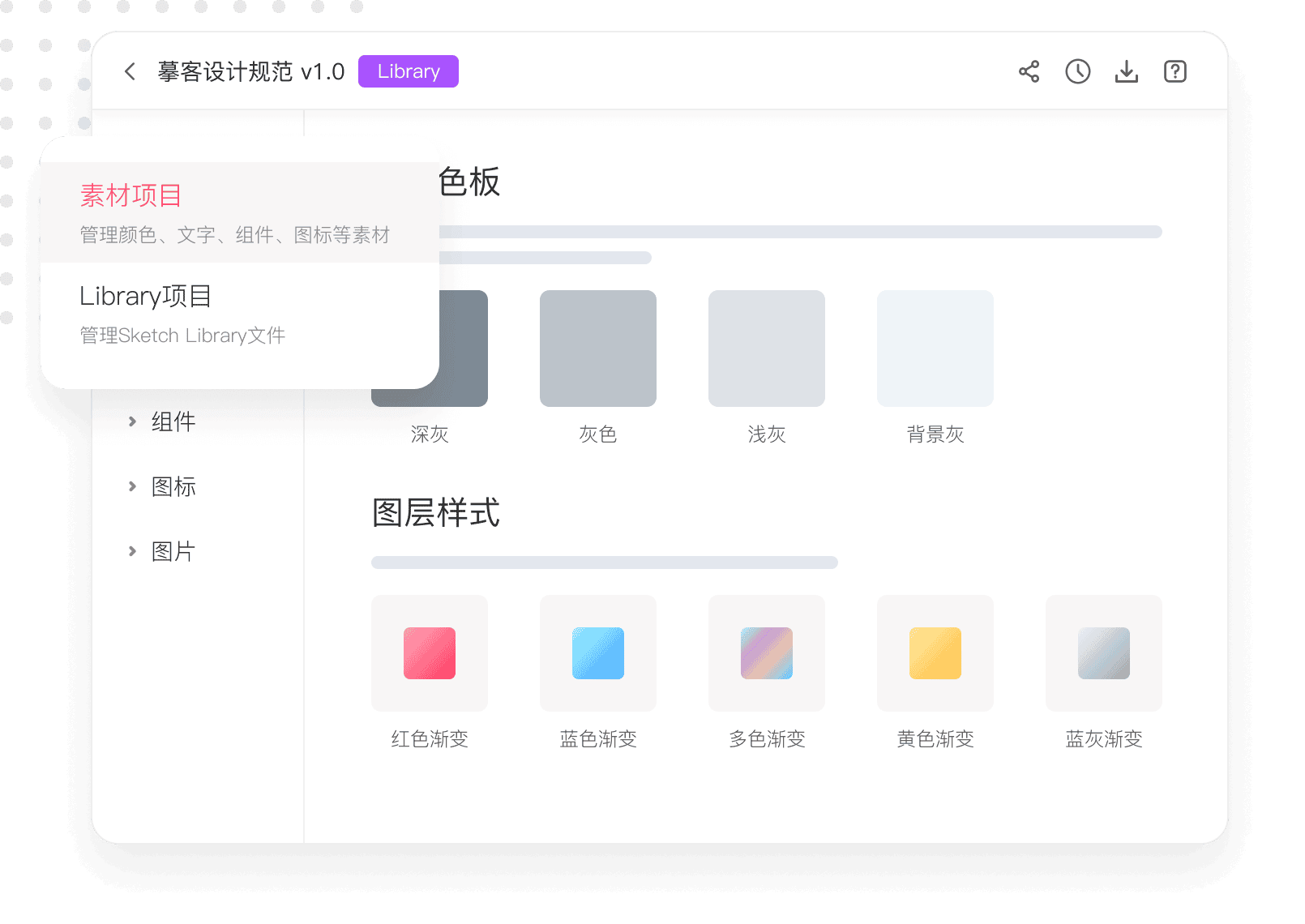 快速构建素材项目和Library项目,高效管理设计资源,轻松复用到Sketch设计稿。