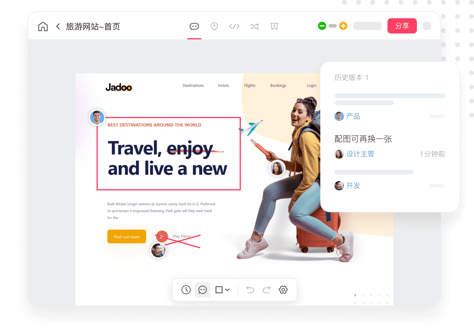设计稿一键发布后,团队成员即可获取最新设计 ; 多种评论方式,在线汇总反馈